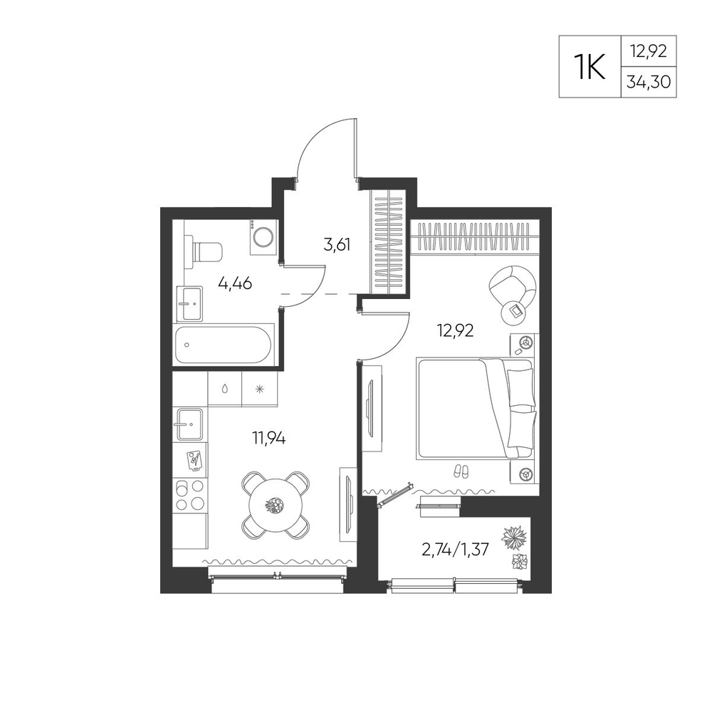 - № 34Жилой дом №1, Секция 1, Этаж 8