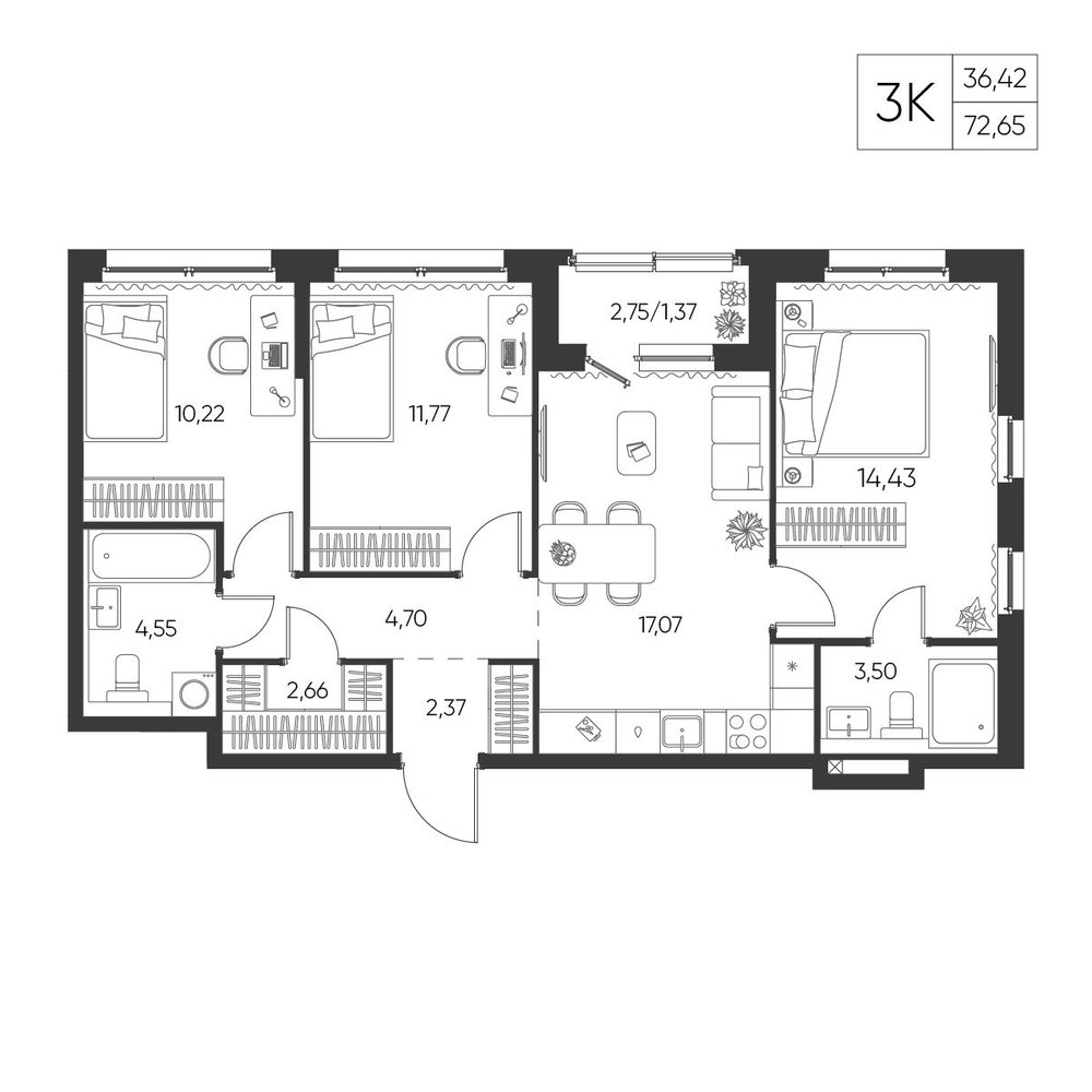 71.29 м2