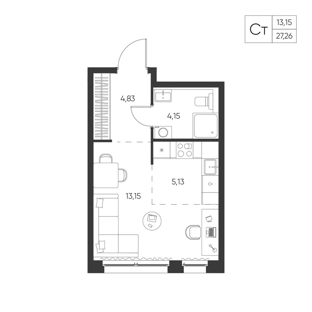 Студия 27.26 м